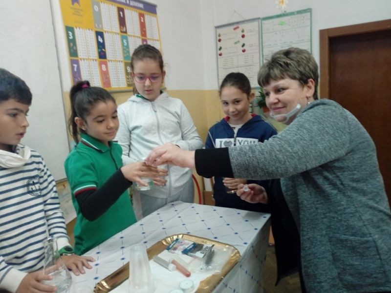 С наблюдения и опити премина днес часът по Човекът и природата. Учениците от III"а" и III"б" клас научно установиха някои от най-важните свойства на водата. Те имаха възможност да експериментират, да анализират резултатите от направените опити и да формулират сами изводи за свойствата и значението на водата. Дадоха полезни съвети как да я пестим и опазваме.