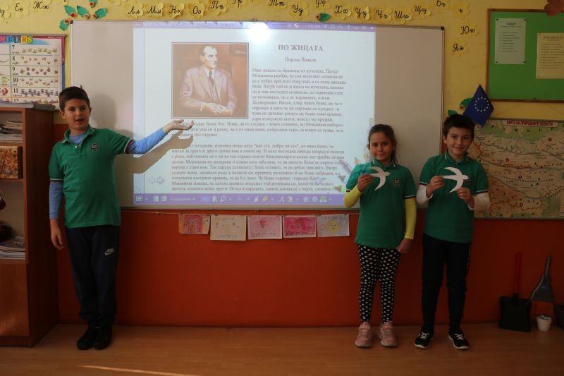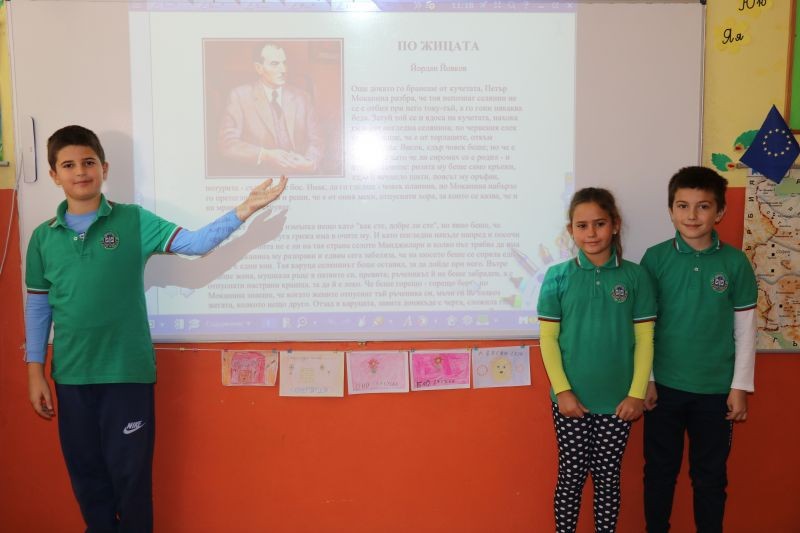 Учениците от трети "а" и трети "б" клас проведоха час, посветен на Йордан Йовков във връзка с патронния празник на училището. Децата научиха факти за живота на един от най-обичаните български писатели. Запознаха се с разказите му "Серафим" и "По жицата". В часовете по изобразително изкуство рисуваха на тема "Доброто в нашия живот".