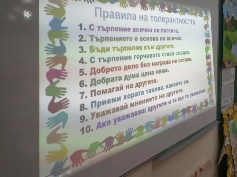 Днес, 16. 11 в ОУ "Елисавета Багряна", учениците от начален етап с голямо желание и ентусиазъм отбелязаха Деня на толерантността.