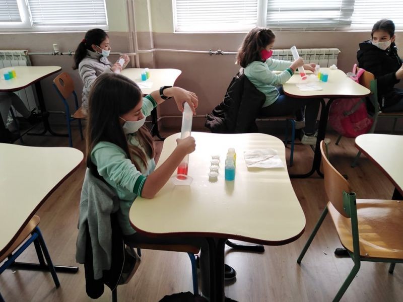 Децата участваха активно в заниманията с предоставени материали, като в процеса на изпълнение се представиха опростени концепции и терминология, директно свързани с приложения материал. Двата представени експеримента са съответно:
