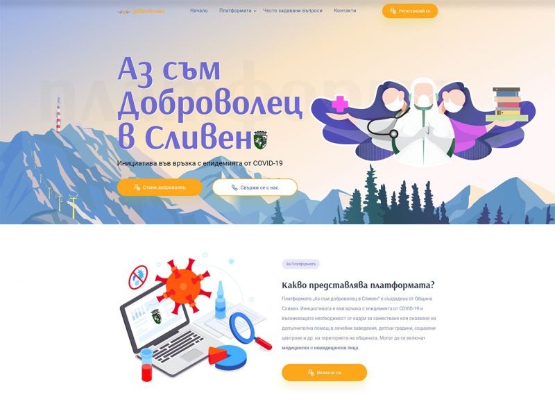 Община Сливен създаде платформа „Аз съм доброволец в Сливен“. Тя се инициира от кмета Стефан Радев във връзка с епидемията от COVID-19 и възникващата необходимост от доброволци или кадри за заместване, както и оказване на допълнителна помощ в лечебни заведения, детски градини, социални центрове и др. Могат да се включат медицински и немедицински лица. Подробности в сайта на Общината тук: