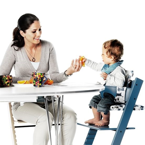 Малките деца са изключително възприемчиви към това, което наблюдават в заобикалящата ги среда. Когато го поставите във високото столче и седнете цялото семейство на масата, детето вижда как се хранят големите и се опитва да им подражава. Казано с други думи, самото присъствие на малкото край масата за хранене възбужда интереса му и то с радост опитва да се храни самостоятелно. И това не е всичко. Присъствайки на масата то се социализира и получава първите си уроци по етикет на хранене.