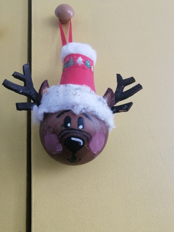 Първо място печели-Ивина Иванова от ДГ "Валентина Терешкова" гр. Батановци, филиал с. Ярджиловци, група "Слънце". Нейната украса е сътворена от изгорели крушки.