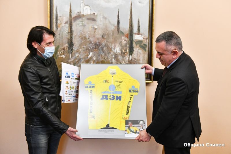 Лидерската фланелка с автограф на големия победител в 67-ата Международна колоездачна обиколка на България Патрик Стош получи кметът Стефан Радев. Тя му бе връчена от Евгени Балев, който е част от Българска федерация колоездене.