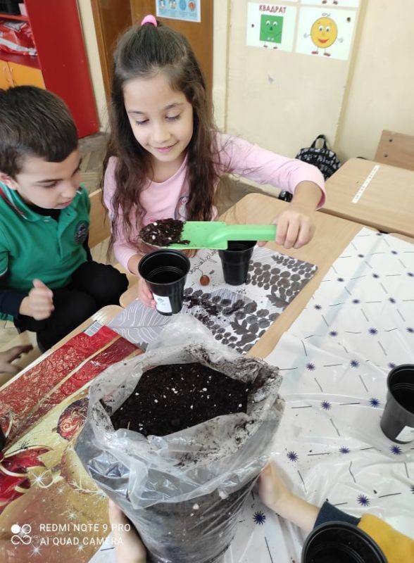 Днес и ние първолаците се включихме в кампанията "Засаждаме бъдеще". Щастливи сме да споделим, че засадихме и ще отглеждаме свои собствени дървета. Вярваме, че има смисъл да правим добро, а Земята има нужда от нашата помощ.