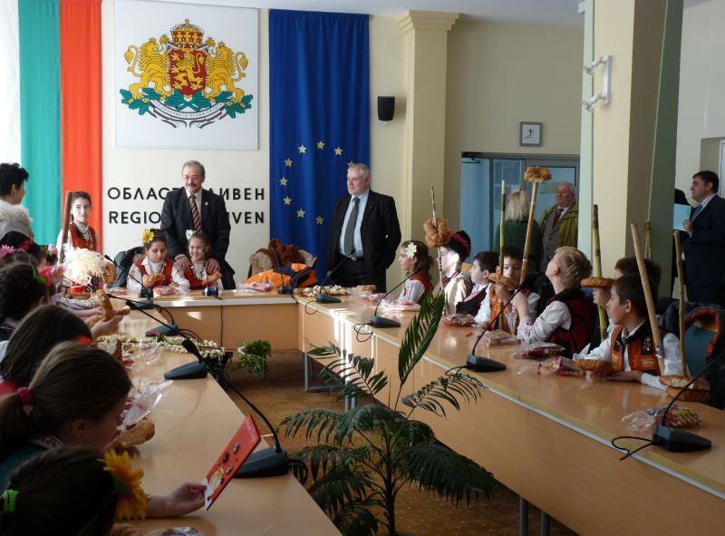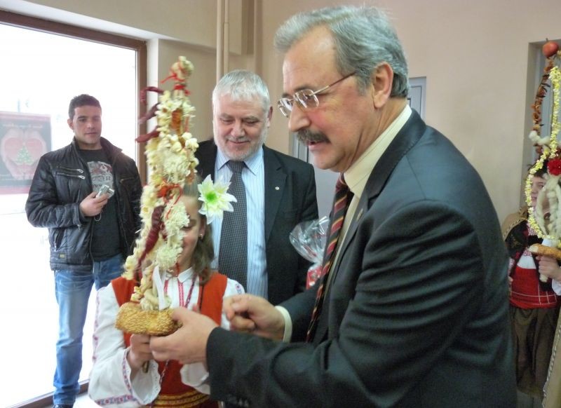 На свой ред областният управител закичи сурвачките им с гевреци и ги дари с сладки лакомства. Той им благодари за оказаното внимание и ги покани отново да му гостуват. Г-н Марин Кавръков пожела на учениците здраве и новата година да им донесе много късмет.
