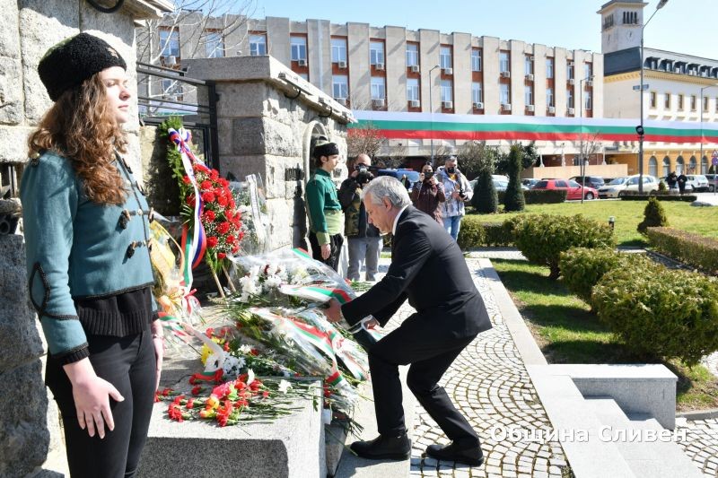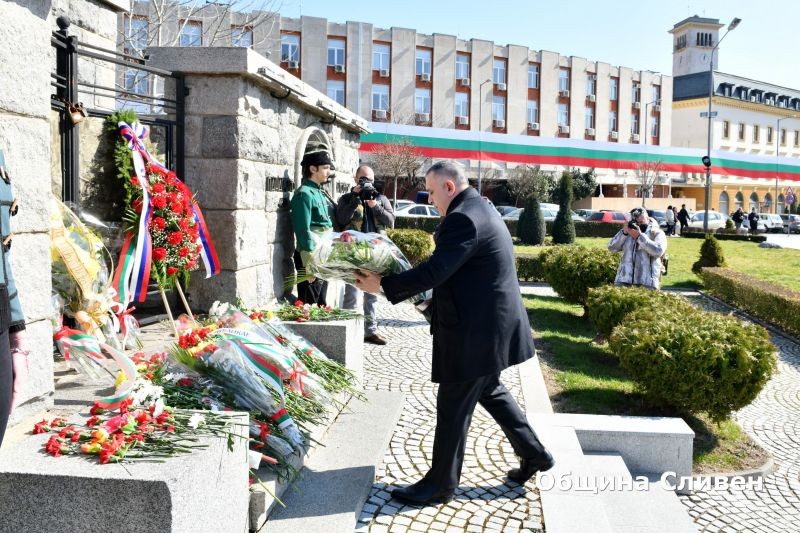 Точно в 12 ч., от Градския часовник в Сливен прозвуча химнът на Република България, съпроводен от общ камбанен звън от всички православни църкви в града.