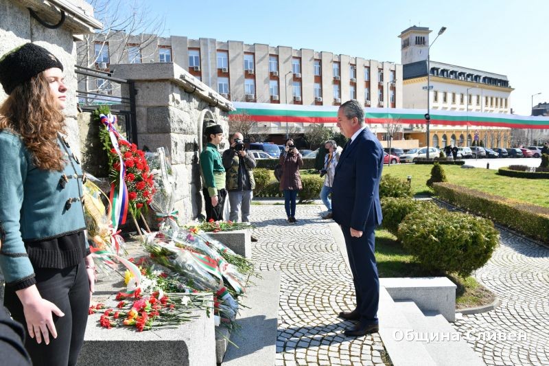 Точно в 12 ч., от Градския часовник в Сливен прозвуча химнът на Република България, съпроводен от общ камбанен звън от всички православни църкви в града.
