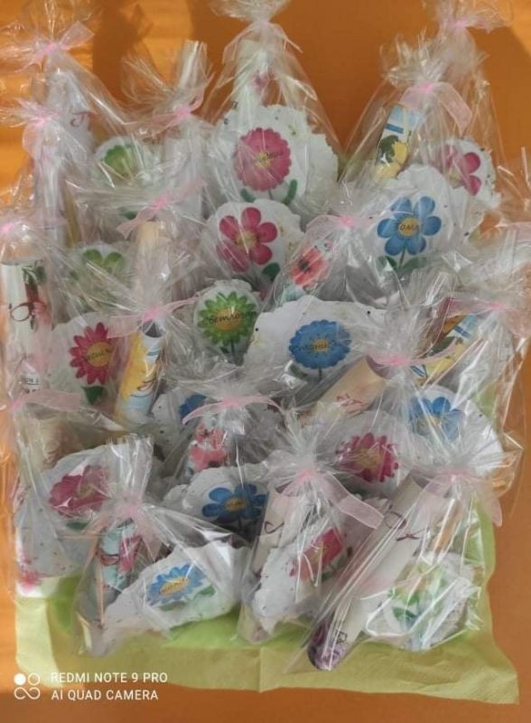 Собственоръчно изработиха с много любов подаръци от натурални продукти - картички със семена и сапуни. Всяко сапунче е със свое ухание и красота, а всяка картичка съдържа семена, които след засаждане и грижи ще се превърне в красив цветен букет.