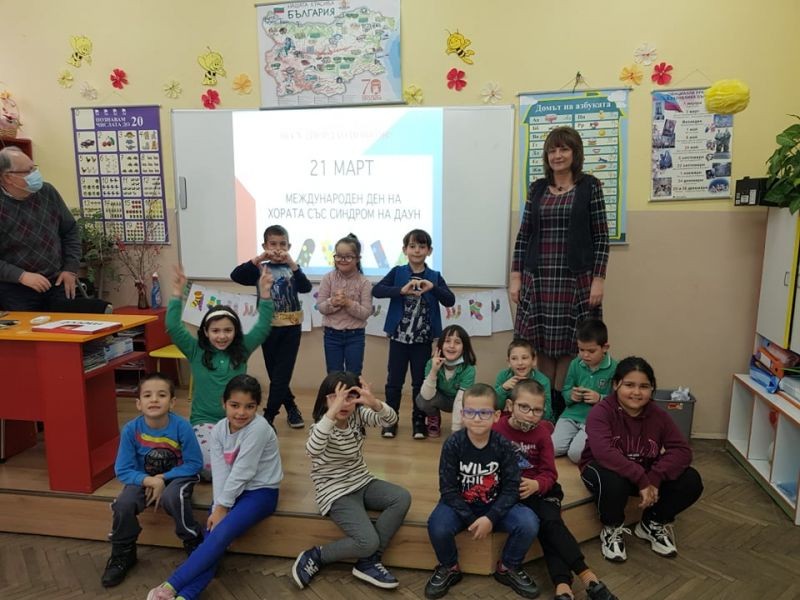 По повод на Международния ден на хората със синдром на Даун – 21 март, днес 19.03.2021 г. в СУ „Йордан Йовков” с активното участие на учениците от 1а клас и подкрепата на класния им ръководител Мария Монева, членовете на Екипа за подкрепа на личностното развитие в училището – ресурсен учител Мария Вълева, логопед Галя Иванова, психолог Марин Пандохов, се проведе един по-специален час - урок по толерантност и съпричастност, урок за приятелството и уважението между децата. В подготовката на материалите за онагледяване на урока се включиха и учениците от група за целодневна организация на учебния ден под ръководството на г-жа Събина Кутрова.