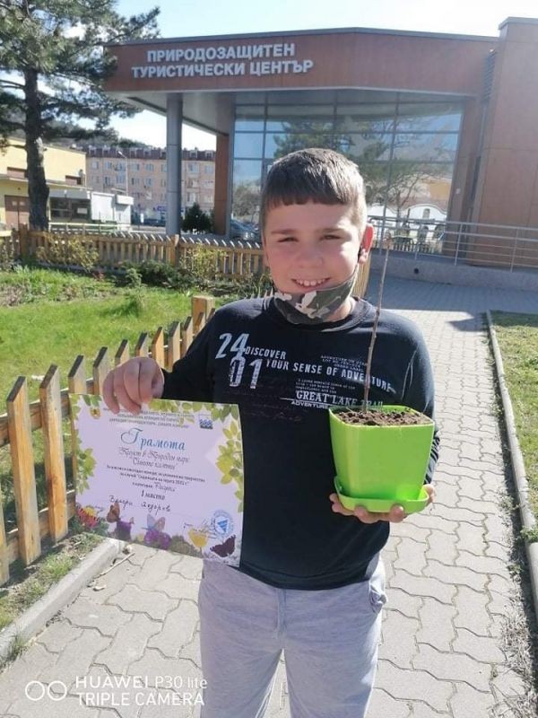 Четвъртокласникът Валери Георгиев Тодоров от СУ "Йордан Йовков" - Сливен завоюва първо място в конкурса за ученическо творчество, организиран от ДПП "Сините камъни" на тема "Пролет в Природен парк "Сините камъни"в категория "Рисунка", по повод Седмица на гората 2021 г.
