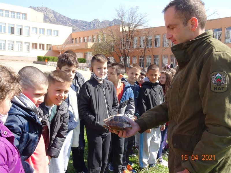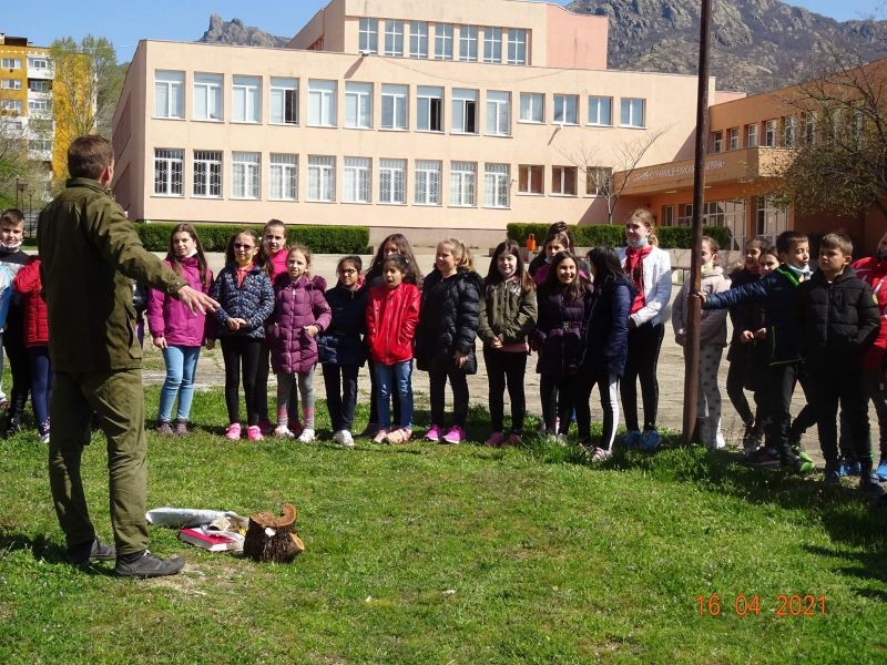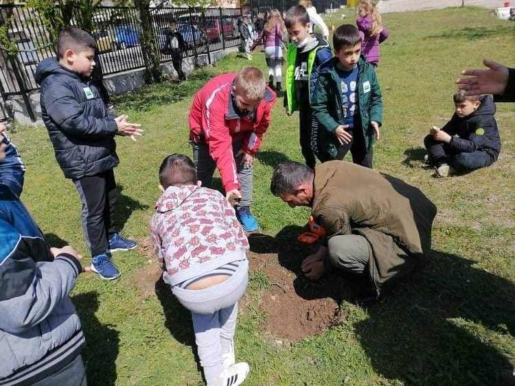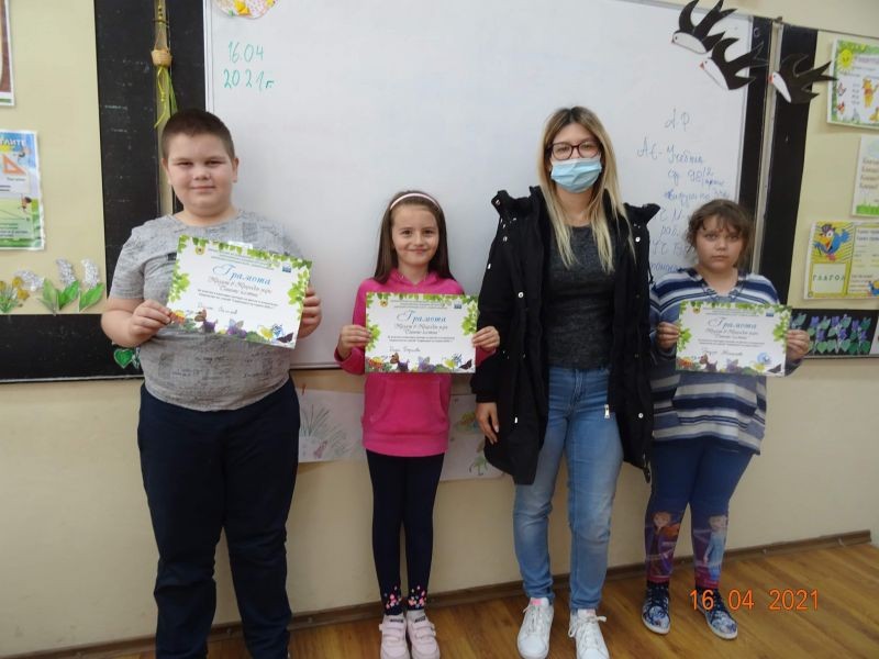 Учениците Никол Георгиева, Теодора Желязкова и Диман Петков от 3. "а" клас получиха своите грамоти за участие в конкурса на тема "Пролет в Природен парк "Сините камъни". По повод Седмицата на гората, под мотото "Гората е здраве", учениците от 3. "а" и 3. "г" класове засадиха шест фиданки от Червен дъб в двора на училището, които ни бяха подарени от служителите на Дирекцията на ПП"Сините камъни". Децата изслушаха внимателно техните съвети какви грижи да полагат за фиданките и разгледаха Червената книга на България. Запознаха се с любопитни и интересни факти за защитени растения и животни, които обитават територията на Природния парк и как да ги пазим.