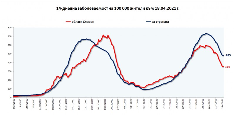 Заболеваемостта в област Сливен е 354 при 485 на 100 000 души в страната