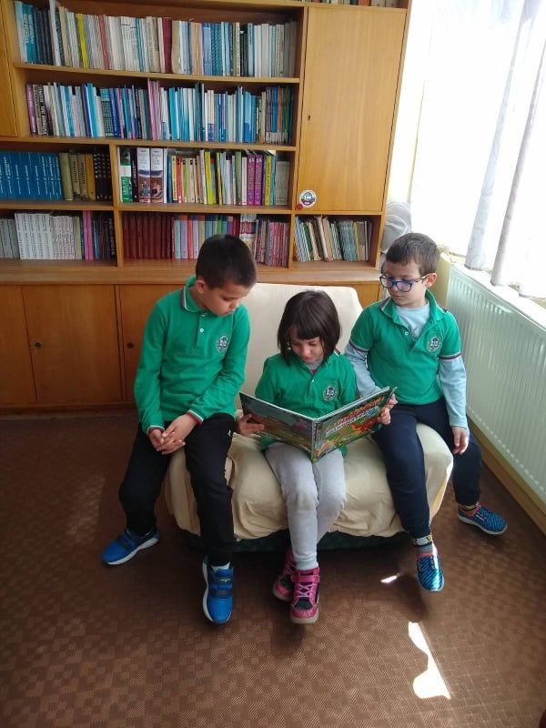С трепет и вълнение децата от първи клас прекрачиха прага на училищната ни библиотека. Те бяха изненадани от многобройните и разнообразни книги, които могат да се четат в библиотеката или да се заемат вкъщи. Научиха, че всяка книга има определено място, за да бъде открита бързо и лесно. Момичетата и момчетата назоваха свои любими приказни герои, показаха завидни умения да четат и разказват приказки и да отгатват гатанки.