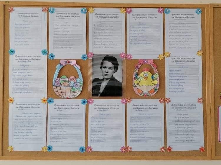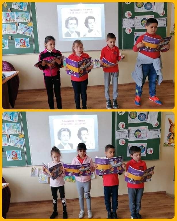 Първокласниците от ОУ „Елисавета Багряна“ с желание се включиха в инициативите, посветени на патронния празник на училището. Проведен бе конкурс за краснопис по стихове на любимата поетеса и отличените участници бяха наградени с грамоти. Подредена беше красива изложба. В часовете по четене „Растем с произведенията на Багряна“ първокласниците се докоснаха до нейното творчество като четоха и рецитираха нейни произведения.