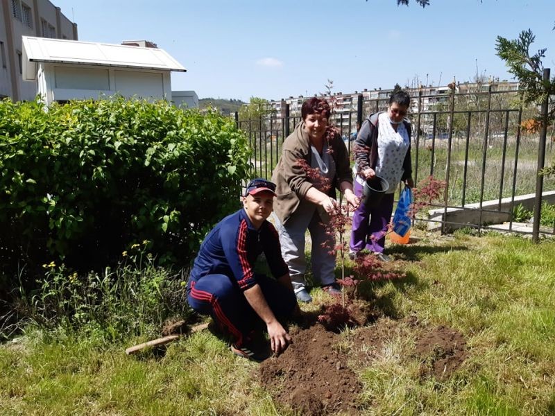 В началото на последната седмица от своето обучение учениците от 12-ти клас засадиха дървото и цветята на випуска.