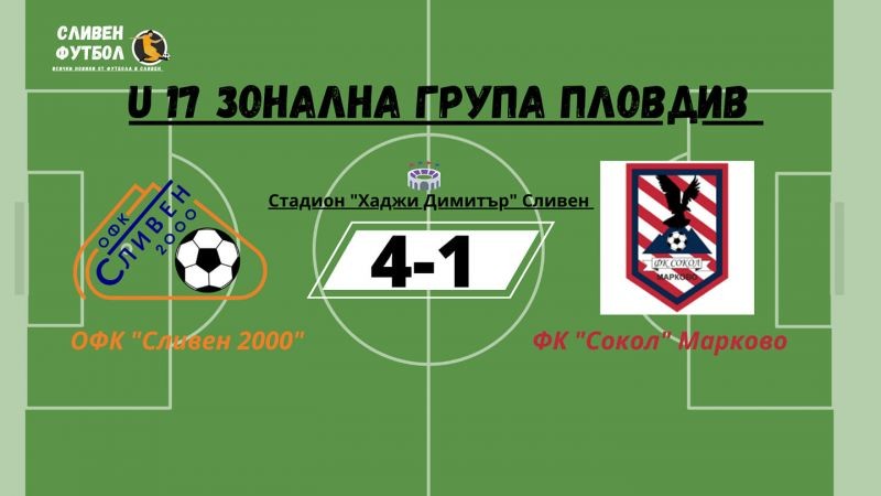 Сладък реванш взеха младите Войводи от sliven-fc.com срещу "соколите" от ФК "Сокол" Марково ! Пред собствена публика, лидера в групата, ОФК Сливен успя да вземе нови 3 точки с които си запазва преднината от 6 точки пред Lokomotiv Plovdiv Football Academy / ДЮШ Локомотив Пловдив. Силния колектив на младите таланти от Сливен си каза думата в този мач и закономерно показаха защо са първи в групата и защо преследват промоция в елитната група където са най добрите отбори в България!