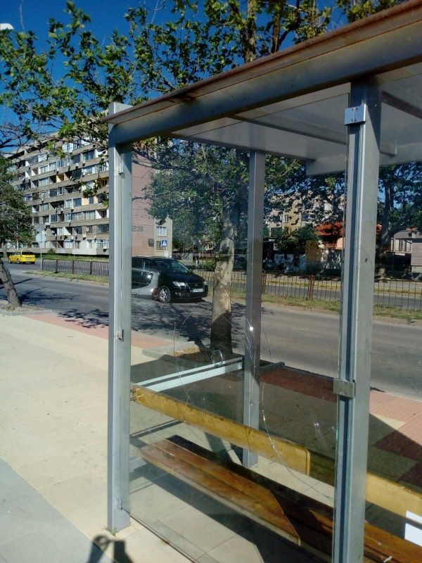 Пореден вандалски акт на автобусна спирка, която Община Сливен скоро възстанови