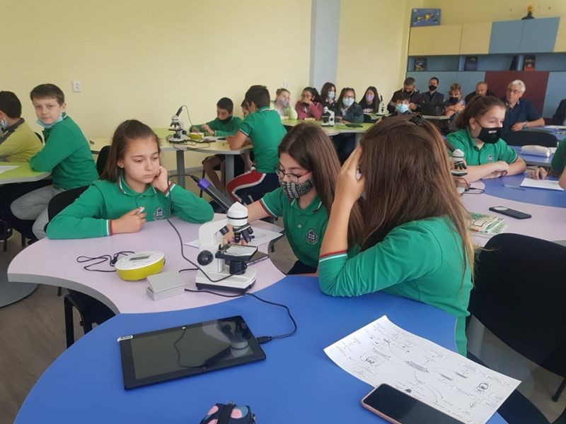 Шестокласниците демонстрираха знания и умения за работа с цифрови микроскопи, таблети, безжични научни лаборатории LabDisc, интерактивен дисплей, софтуер за изследване и анализ на данните, мултидисциплинарни материали за провеждане на експерименти. Учениците измериха честотата на пулса при покой и след активна дейност. Отговориха на поставените въпроси в началото на часа и сами достигнаха до съответните научни изводи и иновативни решения, които са стъпка към модерното образование.
