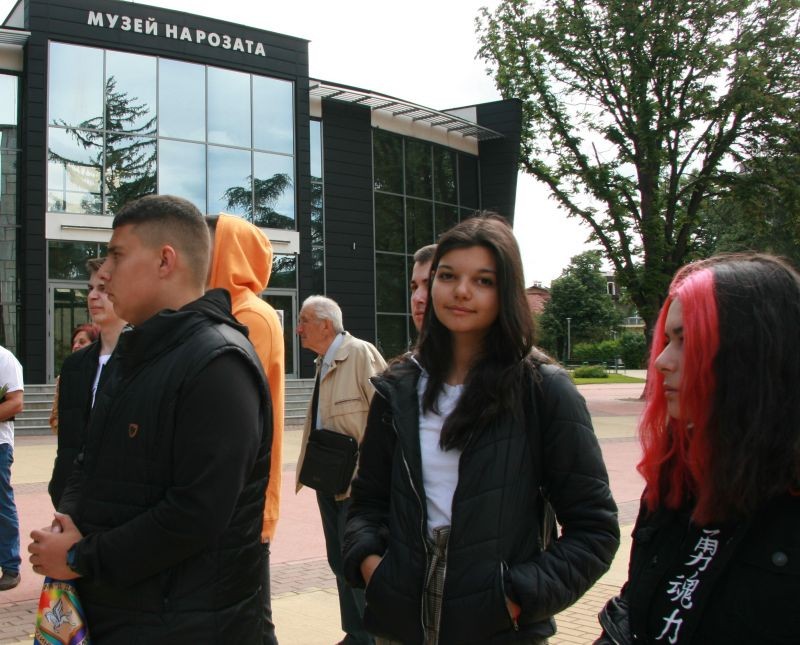 Всичко започна сутринта на първи юни с много смях и много неизвестни на гарата, докато чакахме влака за Казанлък. Наредени пред релсите, с доста багаж и най-вече с настроение бяхме нетърпеливи да се качим във влака и да потеглим за нашето малко пътешествие. Настанихме се във вагона и незабавно започнаха сладките приказки между ученици и учители. Докато се усетим, вече бяхме на гарата в Казанлък, където ни посрещнаха едни големи усмивки. Бързо се придвижихме към Хуманитарната гимназия „Св. Св. Кирил и Методий“ Казанлък – училище с дълга история и... нови приятели. Тържествено ни приветстваха с погача и изпълнение на гайда, от което цялата сграда ехтеше, и ни обзе вълшебно чувство. Заедно с нашите нови приятели от Добрич посетихме вдъхновяващия музей на Чудомир и по-късно се настанихме в така чакания хотел.
