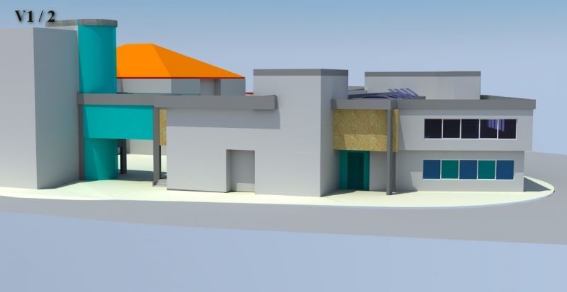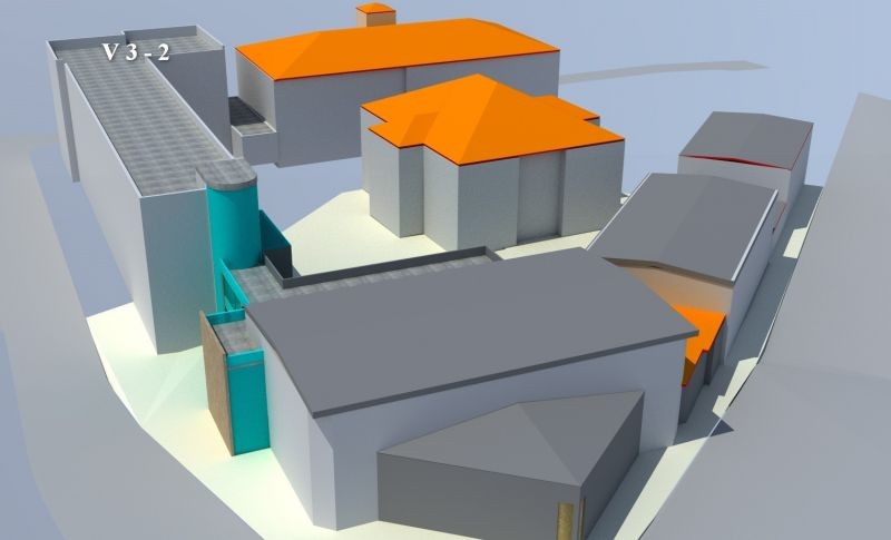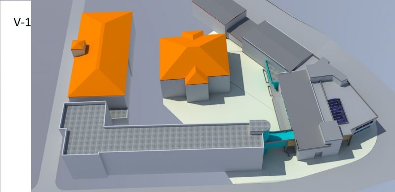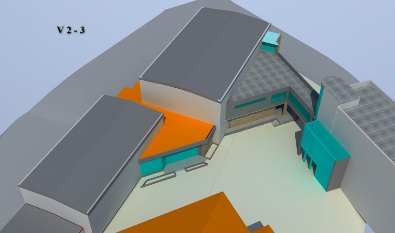 ЗАПАЗВАНЕ на съществуващия физкултурен салон с размери 10 м х 20 м и височина от 7 м, запазва се сцената, което му придава и многофункционално използване. Входът му за посетители при многофункционално използване ще бъде от изток (oт улица „Великокняжевска”. На приземно ниво се предвиждат още общи санитарни помещения (за посетители) и 2 бр. учебни кабинети. Основният достъп за салона за учениците от ГПЗЕ ще бъде на второ ниво, чрез топла връзка директно от училището. На второ ниво се предвиждат още две съблекални за мъже и жени, всяка със санитарно помещение - WC и душове. На второ ниво се предвиждат и 2 бр. учебни кабинети. Достъпът до салона се осъществява чрез двураменна стълба, която води до приземно ниво.