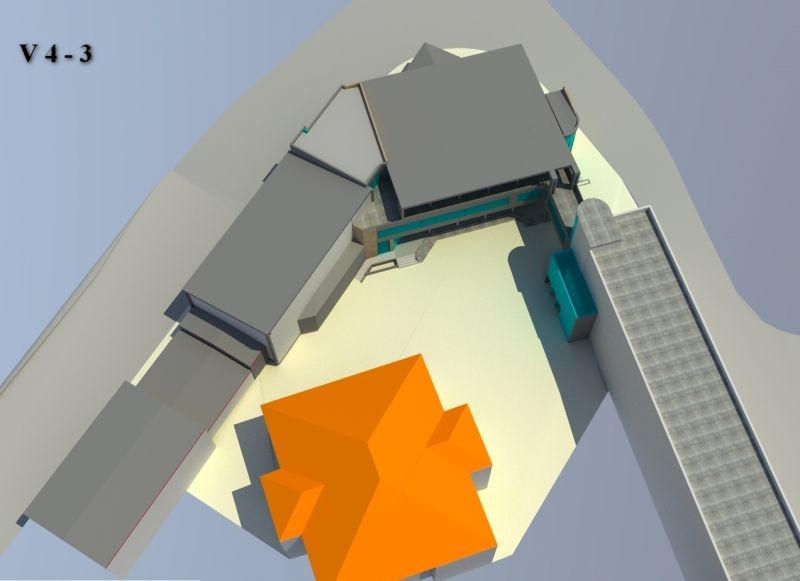 Предвижда създаване на две физкултурни зали с ЕДНАКВИ светли размери 13,2/24,5 метра, със съвместяване на игрални полета за волейбол, тенис на корт единичен, тенис на маса и гимнастическа площадка. Към тях се предвиждат малки зрителни трибуни, както и съответните санитарни и обслужващи помещения, диференцирани за двете гимназии на приземно ниво. До вторите нива се достига чрез двураменни стълби, където са разположени допълните учебни кабинети (за разширение на училищния процес) и санитарни възли. До второ ниво може да се достигне и чрез топла връзка (пасарелка) със сградата на ГПЗЕ. На третото ниво са предвидени допълните учебни кабинети, както и покрити тераси към тях и открита връзка (пасарелка) със сградата на ГПЗЕ. За реализацията на вариант 4 ще са необходими около 2 млн. и 600 хил. лв.