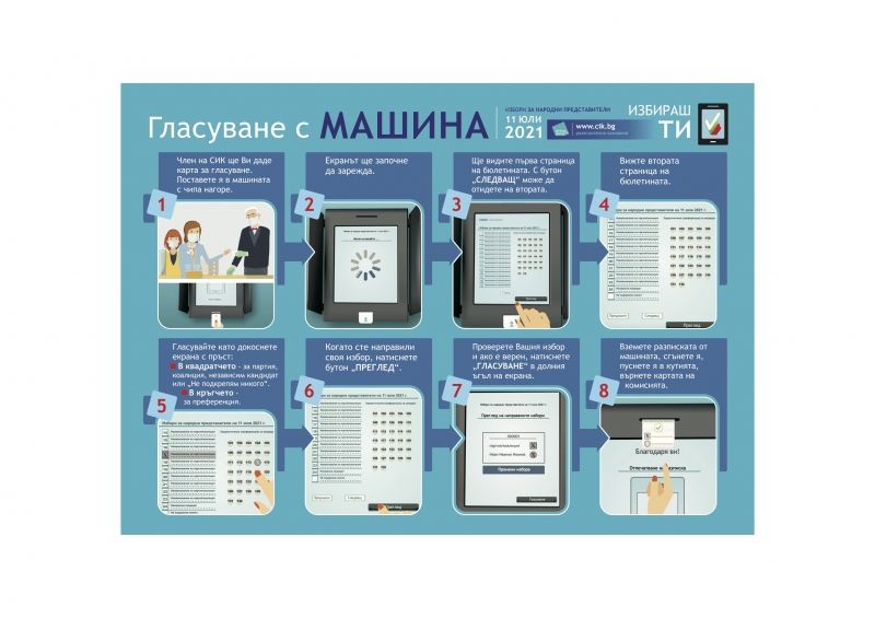По повод предстоящите избори за народни представители на 11 юли 2021 г. Централната избирателна комисия изработи З броя 30секундни видео клипове, един 3-минутен видео материал и плакат, разясняващи начина на гласуване с устройство за машинно гласуване, с цел разясняване правата и задълженията на гражданите.