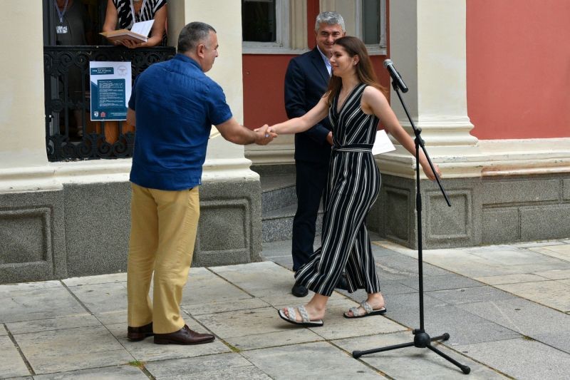 „И тази година програмата на Европейска нощ на музеите е богата, интересна и предлага различни инициативи, подходящи за всички възрастови групи и съобразена с актуалната обстановка. Радвам се, че заедно с д-р Николай Сираков днес ще наградим отличените деца, лауреати от Националната олимпиада по история и цивилизация. Тук е моментът и да ги поздравя за отличните резултати, за креативността и старанието. Това е пътят към знанието и успешната реализация“, каза още Стефан Радев. На всички той пожела здраве и приятни моменти и да се включат в мероприятията, предвидени в програмата. Отличените ученици са  Андон Такев-ППМГ „Добри Чинтулов“, Розалина Влахова-ППМГ „Добри Чинтулов“, Цветелин Цветилов- ППМГ „Добри Чинтулов“, Даяна Минчева-ПГПЗЕ „Захари Стоянов“, Васил Сиромахов- ПГПЗЕ „Захари Стоянов“, Моника Монева–ОУ „Д-р Иван Селимински“, Радост Михайлова-ОУ „Д-р Иван Селимински“, Николай Василев - ОУ „Д-р Иван Селимински“ и Никалас Георгиев- ОУ „Д-р Иван Селимински“.