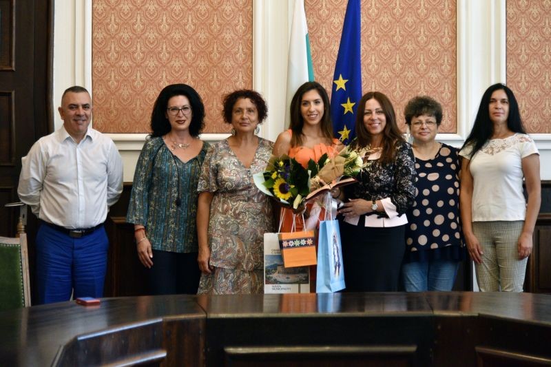 Кметът Стефан Радев днес се срещна с Ванина Стойчева, завършила с пълен отличен успех средното си образование. Възпитаничката на ППМГ „Добри Чинтулов“ е сред 29-те зрелостници от цялата страна, отличени с Национална диплома за отличен успех от Министерството на образованието и науката. Днес дипломата й връчи началникът на Регионалното управление на образованието Милена Чолакова. Кметът подари на Ванина „Енциклопедия България“, издание на Българската академия на науките, цветен албум на Сливен и сувенир от родния град.
