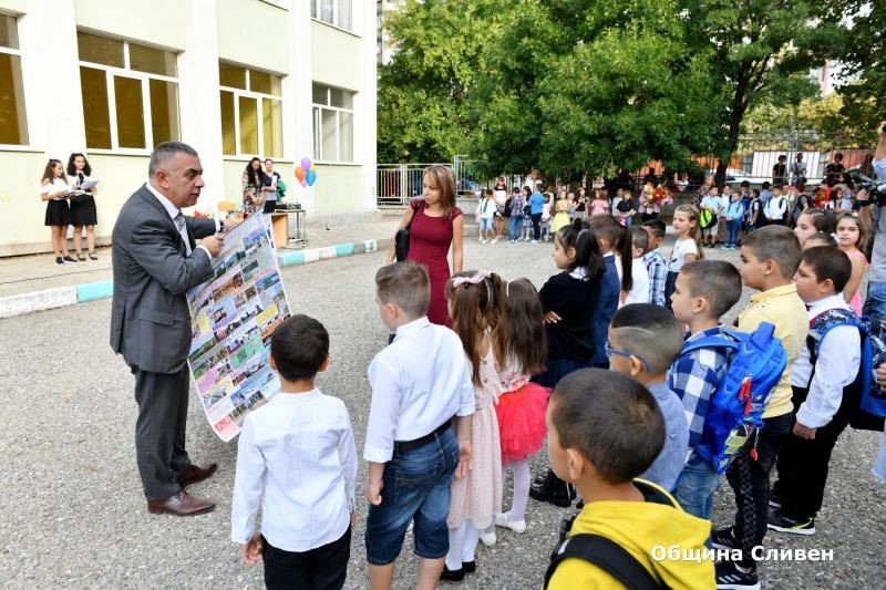И тази година всички първокласници в общината получиха от кмета табло на Сливенския буквар, отразяващ най-емблематичните места на сливенския край, обозначени с всяка буква от българската азбука.