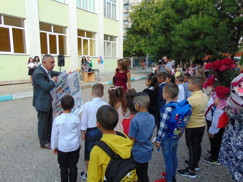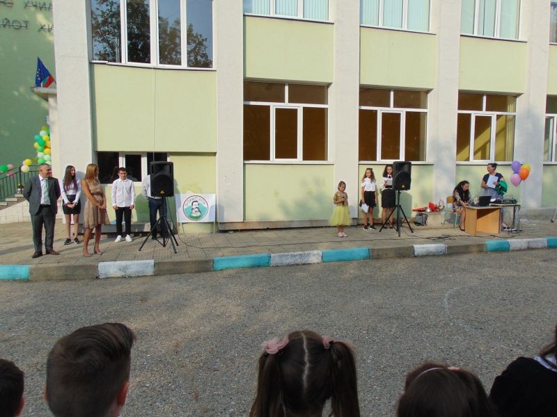 Тази година имахме удоволствието официален гост на събитието да е Стефан Радев, кмет на Община Сливен. Г-н Радев се обърна към ученици, учители и родители, като им пожела много здраве, успехи и вдъхновение. А на първокласниците пожела да прегърнат истински идеята, че са вече големи, ученици, да се трудят и постигат желанията си.