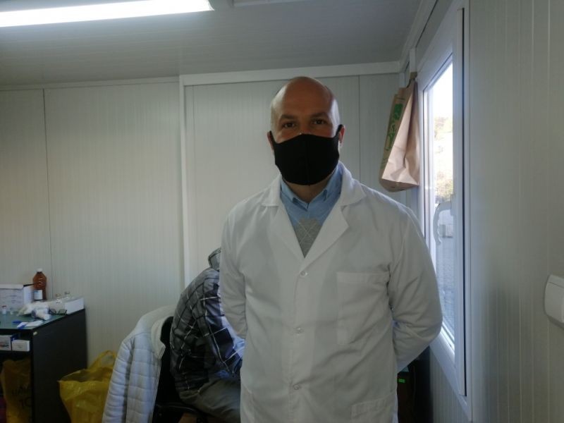 Д-р Тодор Борисов поставя ваксини в мобилния кабинет.