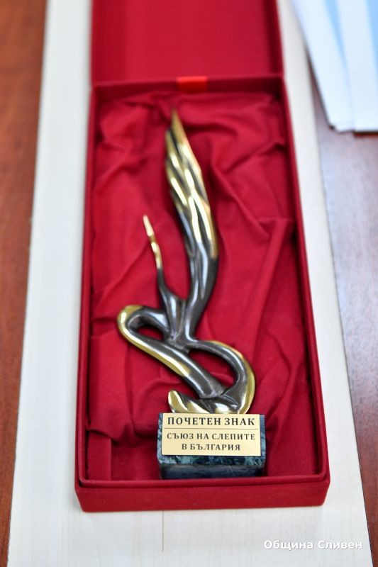 Отличието бе връчено от председателя на Регионалната организация на дружеството Тодор Радев при срещата му със зам.-кмета по хуманитарните дейности Пепа Чиликова. От името на сдружението той изказа благодарност за подкрепата и съдействието от страна на Община Сливен, насочени към социалното приобщаване на хората със сензорни увреждания.