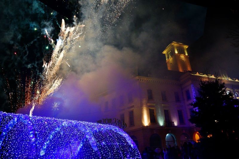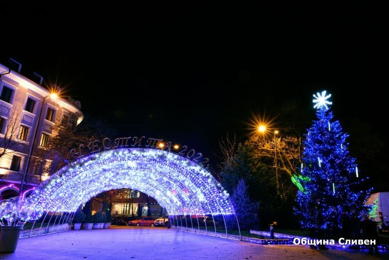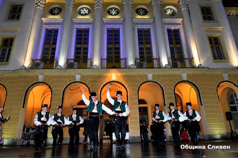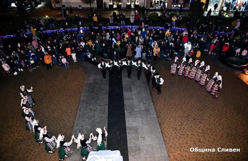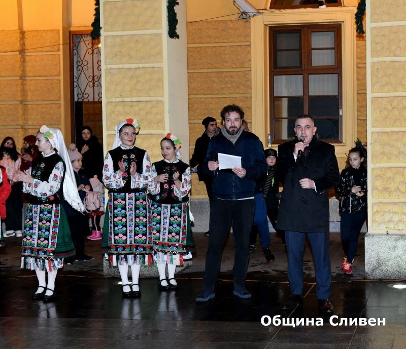 В Сливен тази вечер грейнаха светлините на коледната елха. Поводът събра малки и големи, които заедно с кмета Стефан Радев се включиха в отброяването на секундите до запалването на светлините.