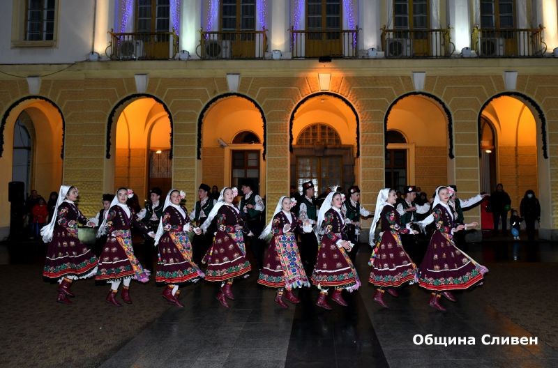 В програмата на вечерта със свои изпълнения се включиха Младежки танцов ансамбъл „Браво“ при НЧ „Хаджи Димитър – 1937“. Кулминацията на вечерта бeше продължителната цветна заря, която огря всички присъстващи на площада пред сградата на Община Сливен.