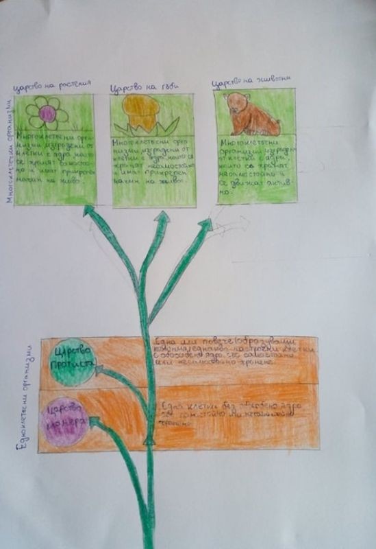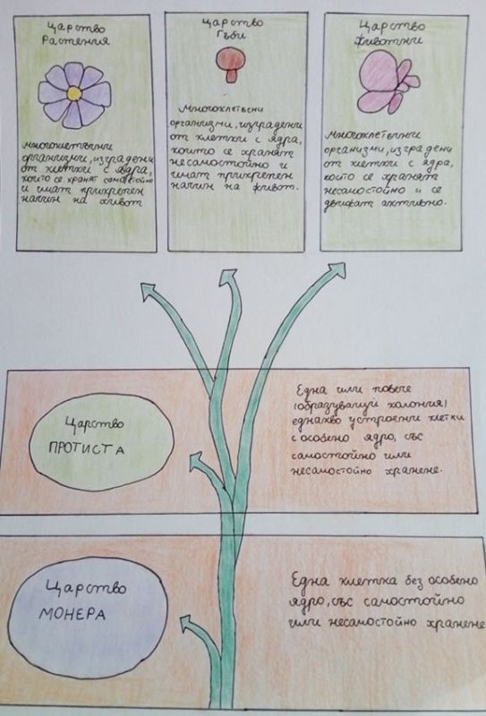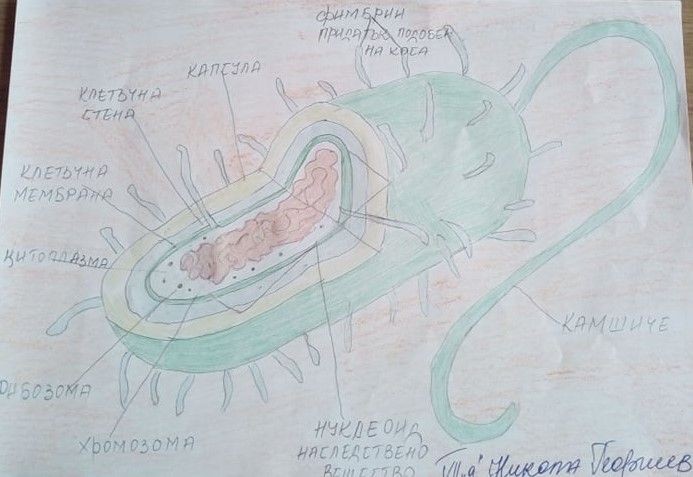 Жулиена Тодорова, Никола Георгиев и Цветелина Дянкова показаха, че биологията е интересна и забавна наука чрез рисунки на прокариотна клетка и петте царства организми.