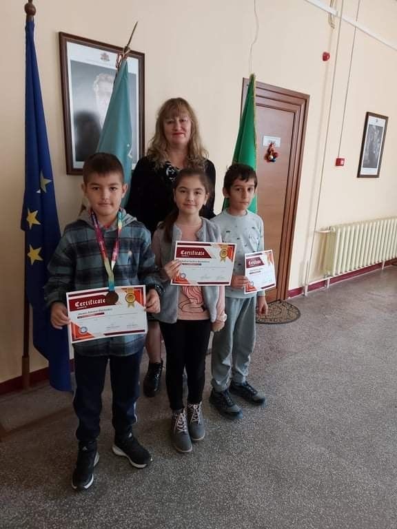 Ралица Иванова от 4. "а" клас и Александра Урумова от 4. "б" клас спечелиха сребърни медали, а Атанас Байнашев от 3. "б" клас е бронзов медалист.