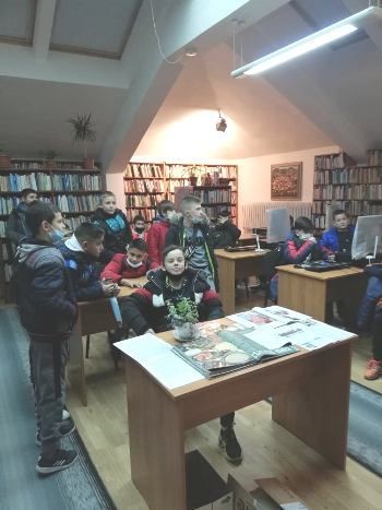 В Регионална библиотека „Сава Доброплодни” на 14 декември се проведе изнесен урок по литература на тема „Ролята на изкуството в живота на човека”. Ученици от 6.а и 6.б клас имаха възможност да разсъждават и пишат по темата в контекста на изучавано от тях произведение – разказът „Косачи” от Елин Пелин. Четоха откъси от разказа, като откриваха пейзажите в художествения текст – ново за тях понятие, което също е включено в обучението им по литература тази година.