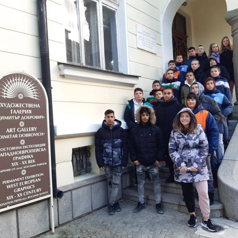 В рамките на проекта "Библиотеките като образователна среда" учениците от 7а клас посетиха художествена галерия "Узунова къща" и работиха със семейния пътеводител на постоянната експозиция "Западноевропейска графика - 19-20 век". С помощта на галеристите бяха представени различни графични техники, използвани от световно известни европейски графици като Пабло Пикасо, Фр. Гоя, В. Кандински и други. Учениците записваха своите наблюдения върху творбите в специално разработените книжки.