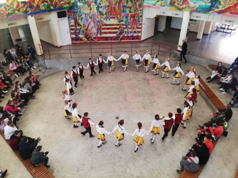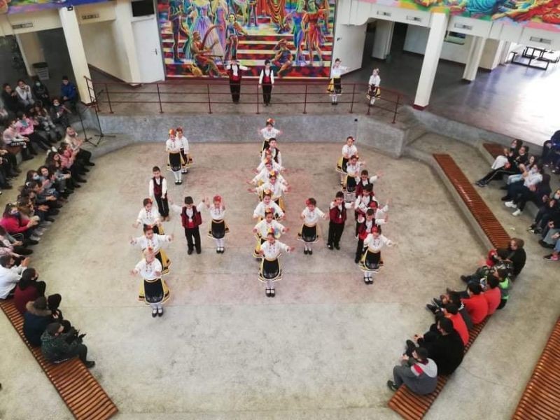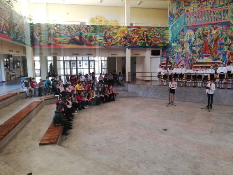 Танцов състав "Детелина" и индивидуални изпълнители направиха празнична атмосферата дни преди Рождество Христово. Поздрав получиха всички от първи до седми клас.