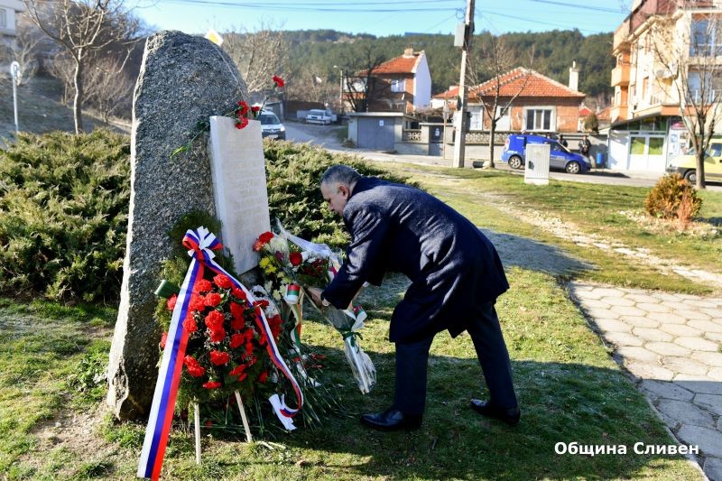 Бележитата годишнина днес почетоха кметът Стефан Радев, председателят на Общински съвет-Сливен Димитър Митев и общински съветници, зам.-областният управител Димитринка Петкова и граждани. В памет на загиналите те поднесоха цветя пред морената на пл. „17 януари“ в кв. „Клуцохор“.