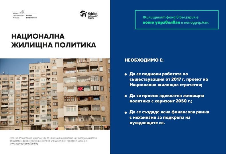 Кампанията е част от проекта „Изследване и аргументи за нови жилищни политики в полза на цялото общество“, чиято цел е да допринесе за разработване на дългосрочни, отговарящи на нуждите, общински и национални жилищни политики, които да осигурят адекватни и сигурни жилища и среда за обитаване на ромите. Научете повече тук: https://hfh.bg/bg/research-based-policy-development/