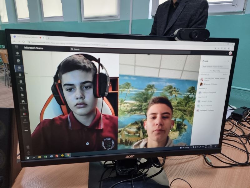 Уточнение: Снимките са на ППМГ „Добри Чинтулов“. На първата са жената, пострадала при грабежа, заедно с трима от младежите, които са й помогнали – Андрей, Виктор и Толга. На втората са Георги и Добромир, които участваха в срещата онлайн заради карантиниране на класа им.