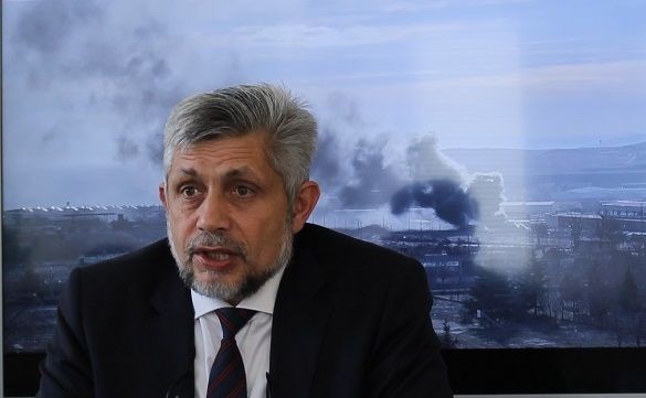 Областният управител В. Вълчев - на екрана зад гърба му се вижда снимка на едно от последните нарушения с горене на гуми в Сливен