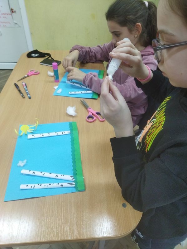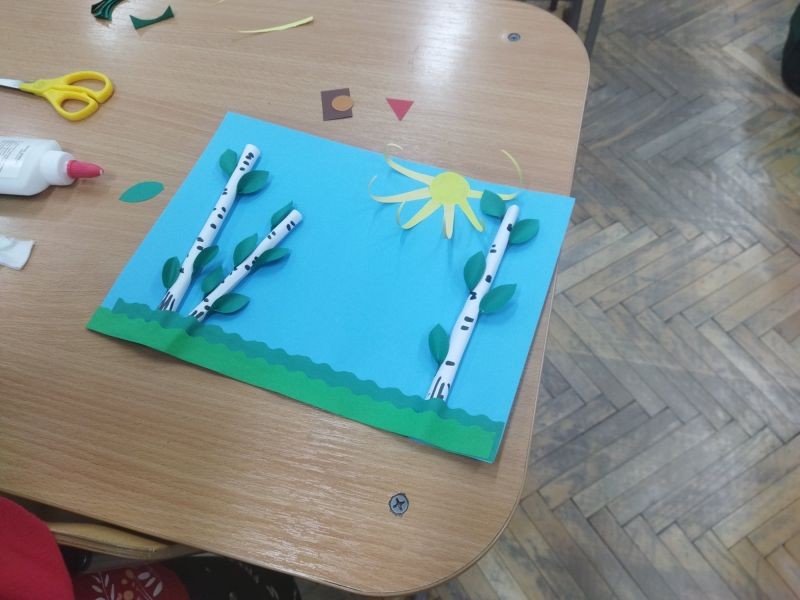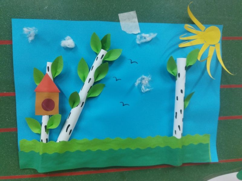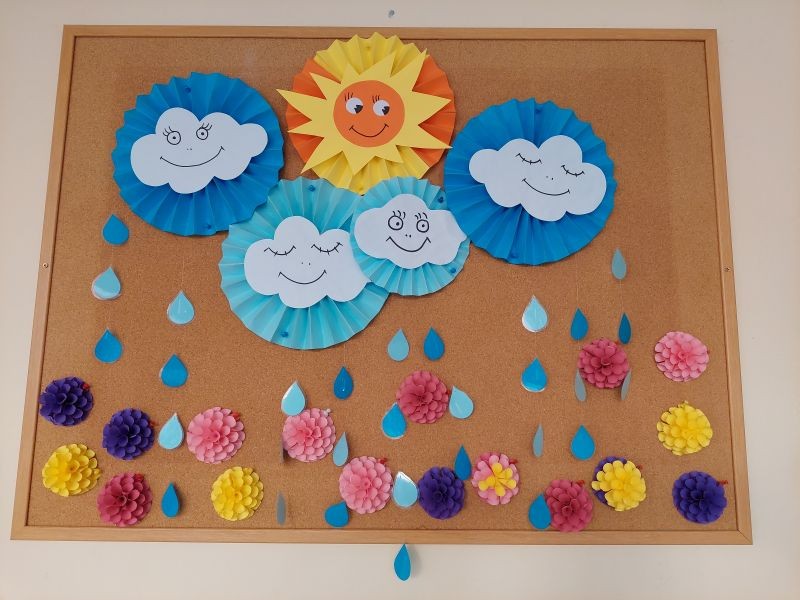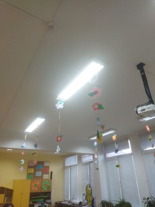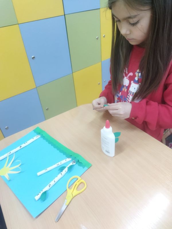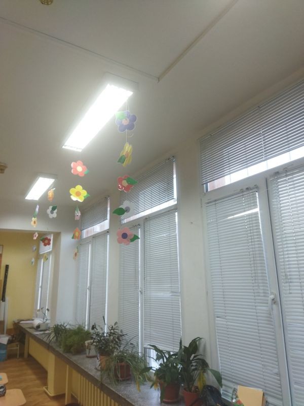 Децата от клуб "Хартиена магия" изработиха гирлянди от пъстри цветя, табло и пролетна апликация за така дълго очакваната пролет. Гирляндите бяха окачени в стаята и в коридора на първия етаж. Предизвикателство беше изработването на апликацията, но с огромно желание и търпение, децата успяха да я реализират.