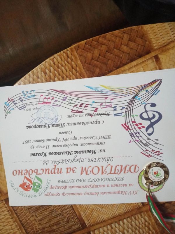 Иванина спечели златен медал в конкурса ,,Песенна дъга над Кутев", който се състоя в Котел.