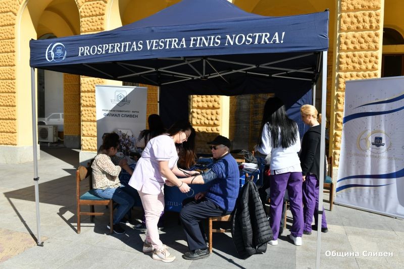 Измерване на кръвно налягане, сатурация, кръвна захар и други показатели ще се извършва на 6, 7 и 8 април пред сградата на Общината в Сливен. Инициативата е на Медицинския филиал в града по повод 7 април – Световен ден на здравето и Ден на здравния работник. Студенти ще извършват измерванията от 10 до 16 часа през трите дни. Община Сливен се включва в проявата с информация за здравословното хранене и предоставяне на плод за всеки, който си направи изследвания.