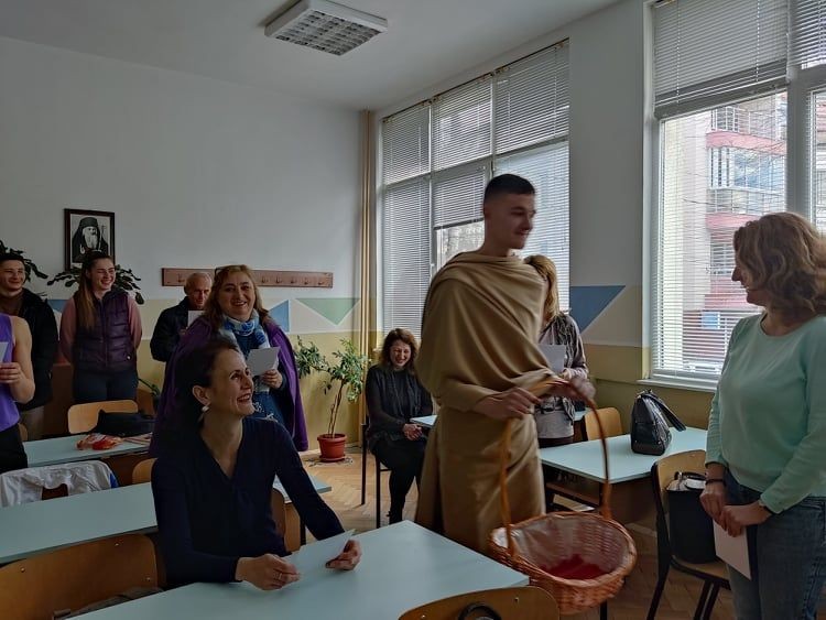 Всяка година зрелостниците на Хуманитарна гимазия организират в последния си учебен ден Номинации за ученици и учители. И тази година приготовленията за дългоочакваното събитие вървят с пълна сила. Дванадесетокласниците успяха да изненадат своите учители с оригинален и артистичен подход в обявяването на събитието и раздаването на покани. Остава точно един месец до Номинации 2022 година!