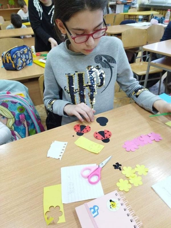 Учениците от клуб "Хартиена магия" и г-жа Мери Божкова изработиха цветни апликации с пожелание за здраве и берекет, за радост и благоденствие.