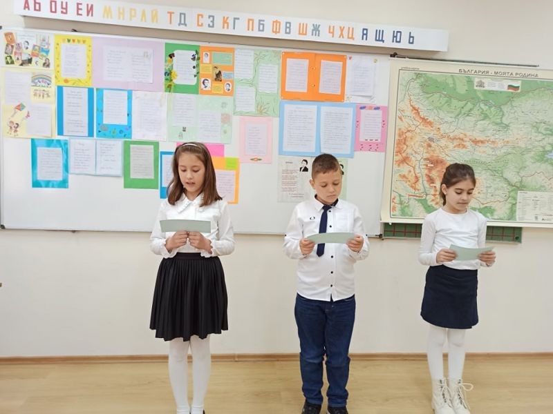 Учениците разказаха за живота и творчеството на Елисавета Багряна. Рецитираха стихове на поетесата за пролетта и пролетните празници – „Април”, „На Цветница”, „Майски великден”.